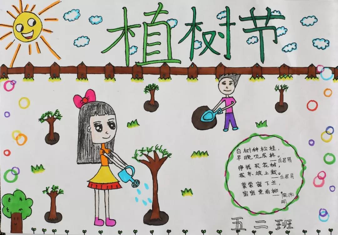 每一张手抄报皆是全班同学智慧的结晶,他们以植树节活动为切入点,把“植树、护树、爱绿”的生态文明观念融入在每一幅画与字里行间之中。